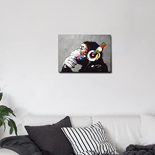 Giallobus - Quadro - Banksy - Dj Monkey - Pronto da appendere - Quadri moderni per la casa (Tela Canvas Telaio Premium Alto Spessore, 70x50 Tela canvas Premium)