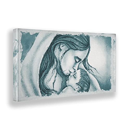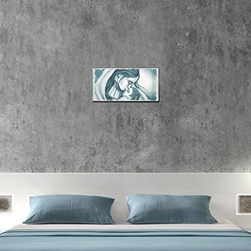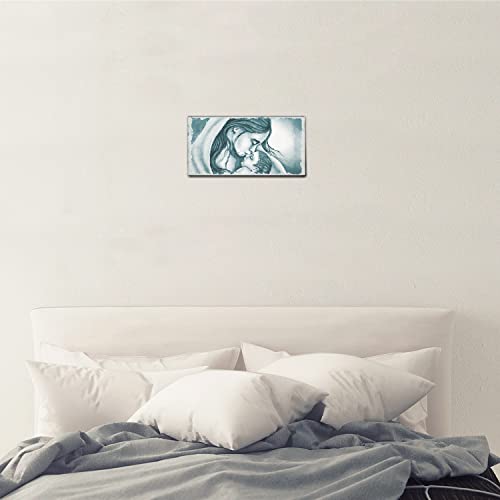 Giallobus - Quadro - 20 - Capezzale Moderno per la casa - Bacio di Maria a Gesù - Celeste - Tela Canvas Telaio Premium Alto Spessore - 35x17,5 - Pronto da Appendere - Quadri Moderni per la casa