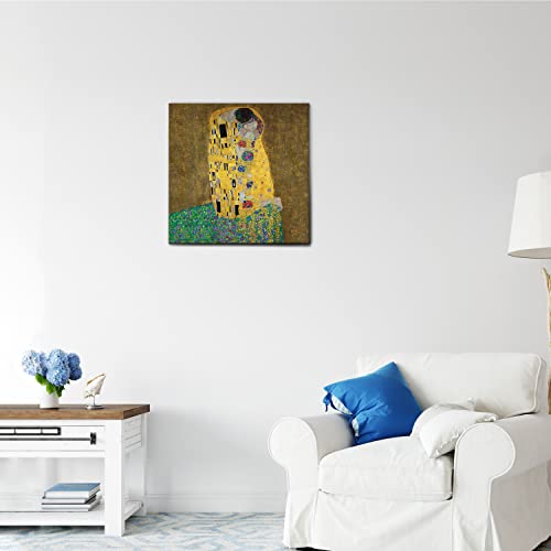 Giallobus - Quadro - Gustav Klimt - Il Bacio - Tela Canvas Telaio Premium Alto Spessore - 35x35 - Pronto da Appendere - Quadri Moderni per la casa