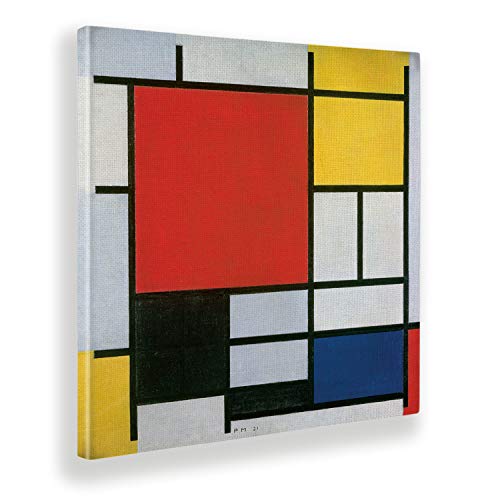 Giallobus - Quadro - Piet Mondrian - Composizione n. 11 in Rosso Giallo Blu e Nero - Tela Canvas - 50x50 - Pronto da Appendere - Quadri Moderni per la casa