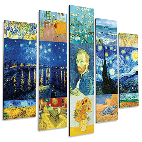 Giallobus - Quadro 5 Pannelli Art Board - Vincent Van Gogh - Van Gogh Collage 3 - Legno MDF - 140x100