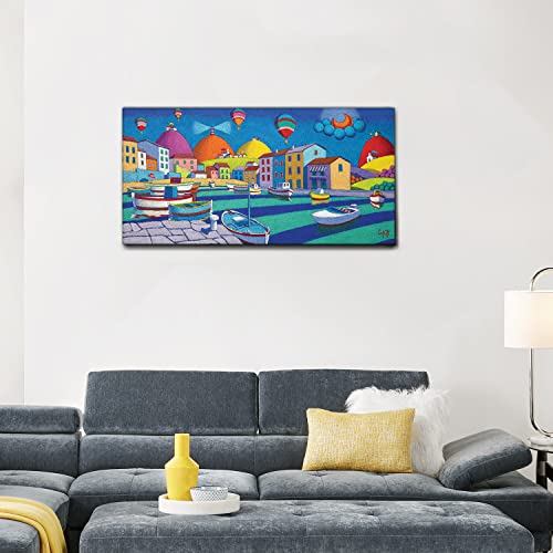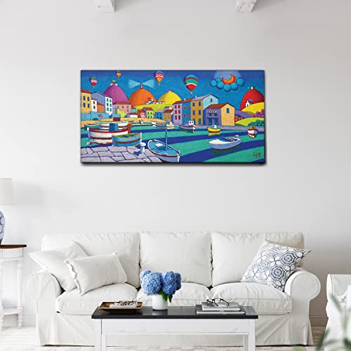 Giallobus - Quadro - Stefano Calisti - Mare barche mongolfiere - Tela canvas - 140x70 - Pronto da appendere - Quadri moderni per la casa
