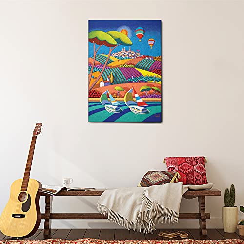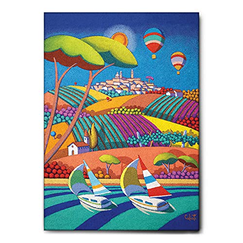Giallobus - Quadro - Stefano Calisti - Paesaggio Mare e Colline - Tela Canvas - 70x100 - Pronto da Appendere - Quadri Moderni per la casa