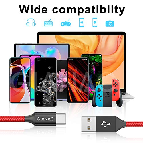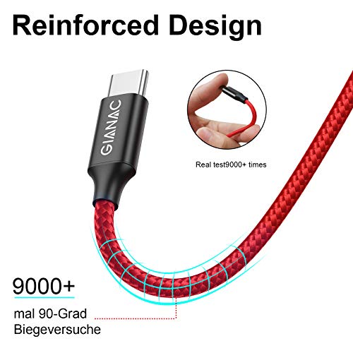 【Superior Quality】GIANAC Cavo USB Type-C,è realizzato in materiale di nylon, intrecciato in modo elaborato per evitare grovigli e danni.Può sopportare oltre 9,000+ inserimenti e piegature.