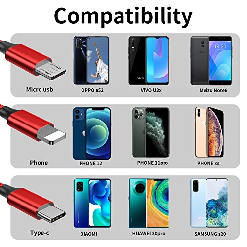 [Perfettamente compatibile] Cavo di ricarica 3 in 1 con 3 connettori per telefono XS Max / XS / XR / X, Android Galaxy S10 S9 S8 S7, A40 A50 A70, A3 A5 (2017), J3 J5 J7, Huawei P30/ P20/ P10, Mate20, Honor View 10, Nexus / HTC / Motorola / Nokia / LG / Sony / PS4.