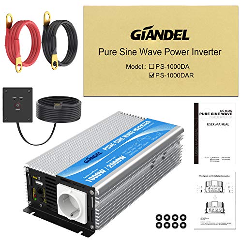GIANDEL inverter a onda sinusoidale pura 1000w invertitore di potenza DC 12V a AC 220V 230V Convertitore con telecomando con presa AC & 2.4A Porta USB per RV Truck Car