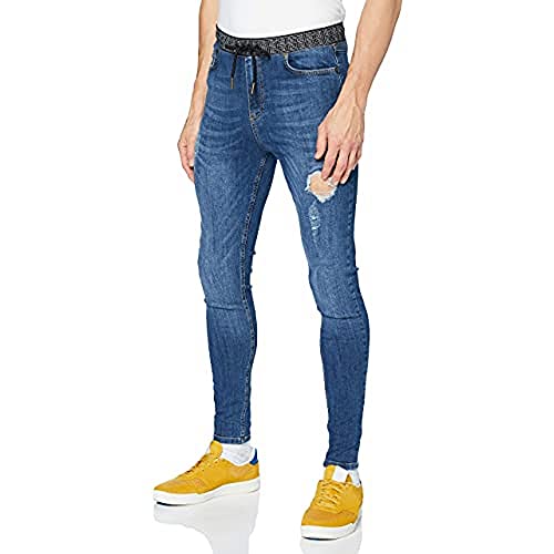 Gianni Kavanagh Medium Blue Core Ripped Jeans with GK Elastic, Blu Medio, XL Uomo