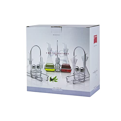 Giannini Oliera 4 pezzi completa di Oliere in vetro borosilicato quadre Squared 250 ml Spargisale Spargipepe Supporto filo in acciaio inox