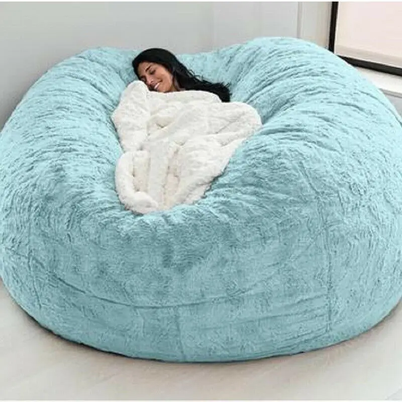 7ft Giant Fur Bean Bag Cover Soft Fluffy Fur Portable Living Room Sofa Cover only
