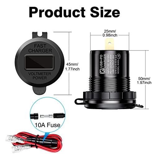 Giantdeer Caricabatterie da auto rapido da 63 W con doppia porta PD&QC 3.0 con interruttore di alimentazione, visualizzazione tensione e potenza di carica