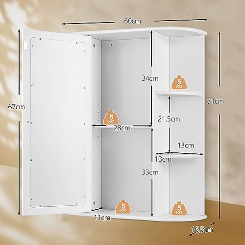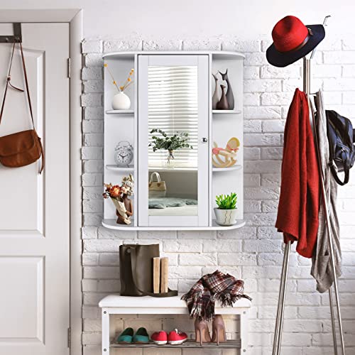 GIANTEX Armadietto Bagno a Parete, Mobiletto Pensile con Ante di Specchio, 6 Scomparti Laterali, 2 Colori Disponibili, 60x16,5x70 cm