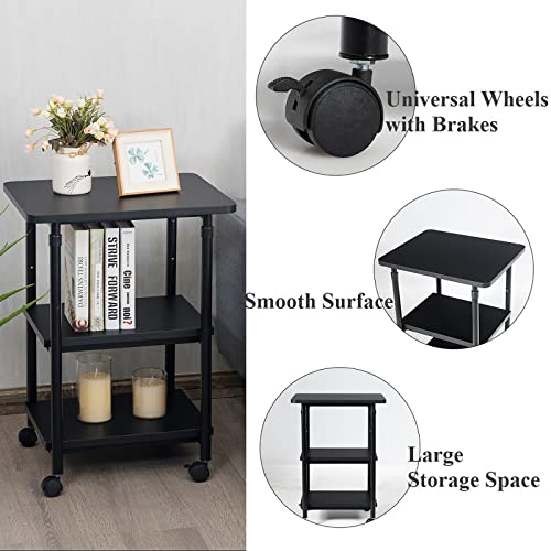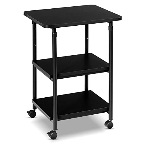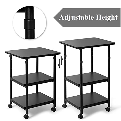 Giantex Carrello Supporto per Stampante, Scaffale Portaoggetti con Ruote, a 3 Ripiani, Ruote con Freni, Altezza Regolabile, Portata di 50 kg per Ogni Piano, 49x40x67-77 kg