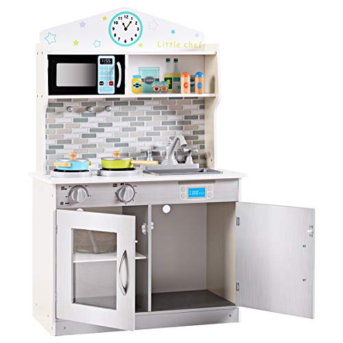 Giantex Cucina per Bambini, Giocattoli Cucina in Legno, Set di Cucina per Bambini, con Accessori Padella, Rubinetto e Lavabo, Forno a Microonde, 94 x 30 x 60 cm