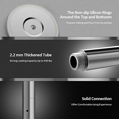 Buone sicurezza e stabilità: Grazie agli anelli antiscivolo delle basi, la stabilità dell'asta per pole dance statica è migliorata molto. E siccome tutto il tubo è realizzato in acciaio inossidabile, e con una superficie liscia, offre la massima sicurezza a chi sta ballando. E grazie ai materiali affidabili, può durare a lungo e reggere fino a 200 kg.