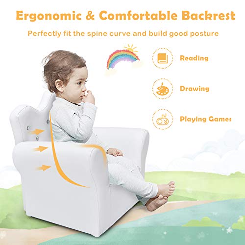 GIANTEX Divano Bambini Componibile Divano con Sgabello per Bambini Set Divano e Poggiapiedi Divano da Principessa, 58 x 40,5 x 49 cm (Bianco)