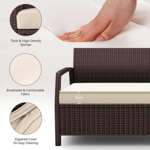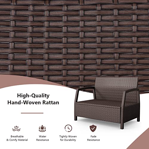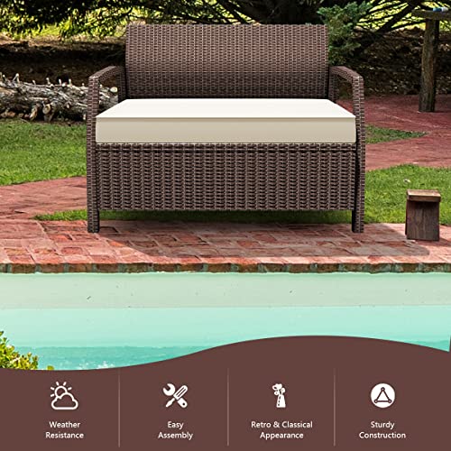 GIANTEX Divano da Giardino a 2 Posti in Rattan, con Cuscino per Seduta, per Balcone, Divano, Giardino, Terrazze, 108 x 65 x 83 cm