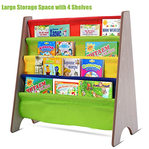 Giantex Libreria per Bambini in Legno con 4 Ripiani Portalibri a Tasche Verticale Scaffale Portaoggetti per Cameretta dei Bambini, 62 x 26 x 60 cm (naturale)