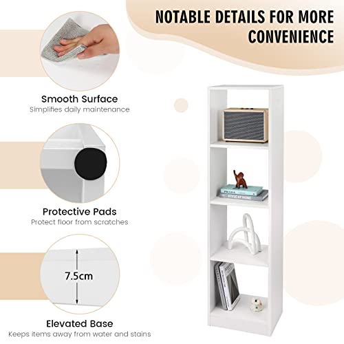 GIANTEX Libreria a 4 Ripiani Bianco, Scaffale in Design Moderno Mobile Portaoggetti per Bagno, Studio, Soggiorno, 38x33x142 cm