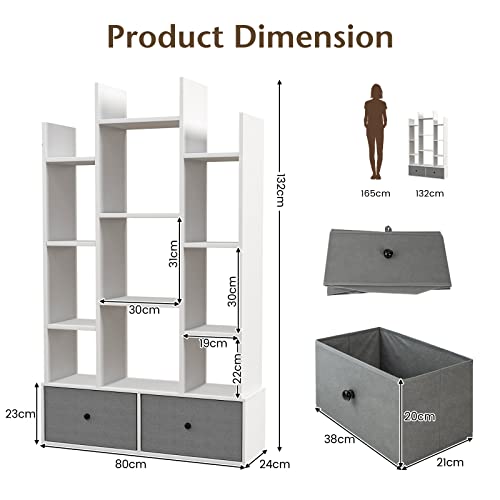 GIANTEX Libreria con 4 Ripiani Scaffale per Libri con Cassetti, Espositore di Decorazioni Portaoggetti, Scaffale Libri da Terra, 80x24x133 cm, 2 Colori (Bianco 2 Cassetti)