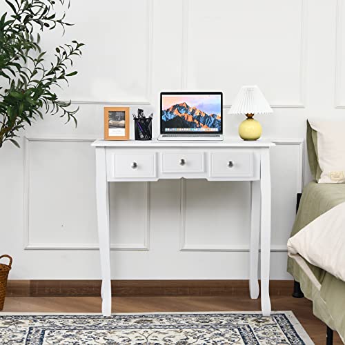 Ampio spazio di archiviazione: Il tavolo da toeletta è dotato di 5 cassetti che offrono spazio sufficiente per i vostri cosmetici e gioielli. Inoltre è presente un contenitore rimovibile sul piano del tavolo, che può essere utilizzato separatamente per riporre i pennelli da trucco.