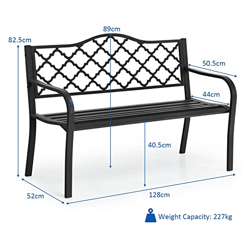Giantex Panca in Ferro per Giardino a 2 Posti Panchina con Schienale e Braccioli, Panchina Vintage a Doppio Posto,128x58,5x89 cm