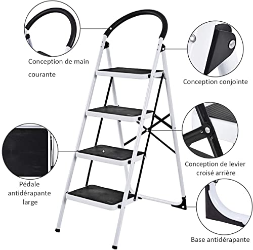 Giantex Scaletta Pieghevole, 2/3/4 Gradini Antiscivolo, Scala in Alluminio, Portata di 150 kg, Attrezzo Domestico e Comerciale, per Casa/Ufficio/Negozio (4 Gradini)