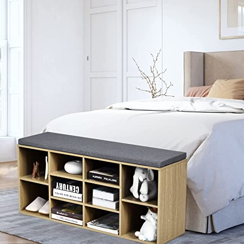 Giantex Scarpiera con Cuscino, Cassapanca per Scarpe con 10 Scomparti e 2 Ripiani Regolabili in Altezza, 104 x 30 x 48 cm (naturale)
