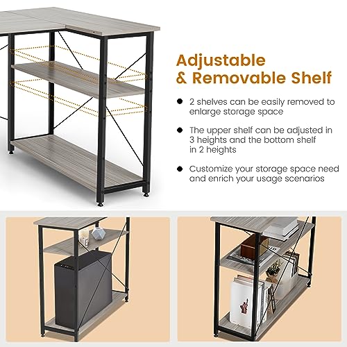 Giantex Scrivania Libreria da Ufficio a Forma di L, Scrivania ad Angolo con Scaffale a 2 Ripiani, Design Industriale con Ripiani Reversibili, per Casa, Ufficio, Soggiorno (Grigio)