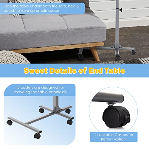 Giantex Tavolino Porta Notebook/Laptop, Reclinabile con Pomello, a Forma di C, con 5 Ruote, Portabile e Salvaspazio, Ideale per caffè, Lavoro, Studio, Portata di 15 kg, 60x40x91,5 cm