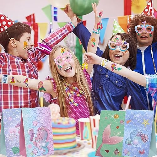 Giaonlgy 70 Pezzi Gadget Compleanno Sirena Bambina,Sirena Regalini Festa Compleanno Accessori Festa Sirena con Braccialetti Slap, Tatuaggi, Portachiavi,Sacchetti da Regalo,Occhiali,Regalo Party Set