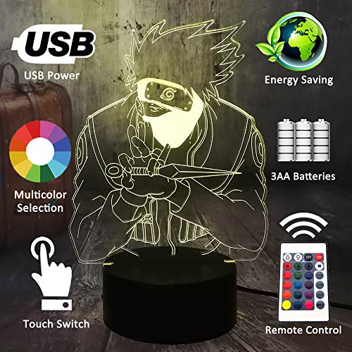 Giapponese Anime Hatake Kakashi Holding Dolch Uzumaki 3D LED Luce notturna USB Baby Sleep, Lampada da tavolo per bambini, ragazzi e bambini, vacanze di compleanno, giocattolo di Natale