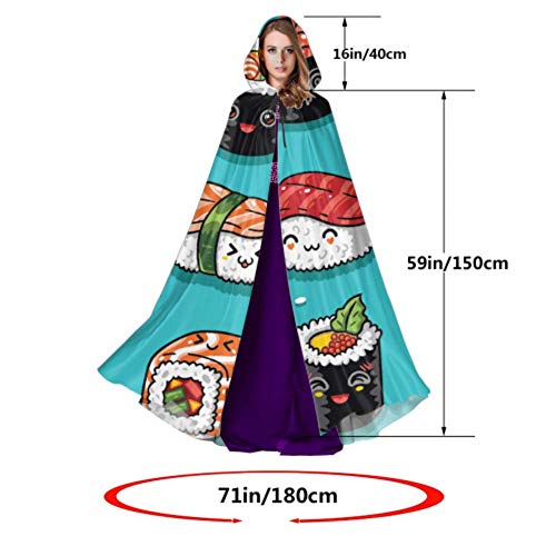 Giapponese Delizioso Sushi Cibo Cappuccio Mantello Donne Adulto Mantello Mantello 59 Pollici per Natale Costumi Cosplay di Halloween
