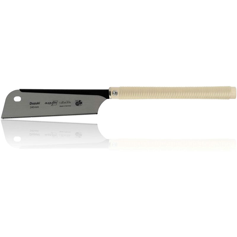Dozuki - sega giapponese tradizionale con retro in solido acciaio. Per tagli di precisione di legni sia duri che morbidi (ad es. per modellismo). Dentatura di qualità rifinita su tre lati. Lunghezza lama 240 mm. Lungo manico in legno di tiglio.