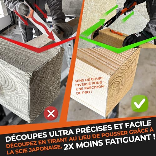 Tagli ultra precisi: a differenza delle normali seghe a mano, la sega giapponese si taglia quando si tira la sega. Ciò consente i migliori risultati di taglio possibili in termini di precisione, pulizia e velocità.