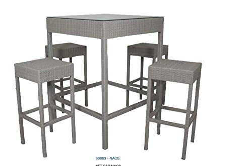 Giardicasa Set Bar Modello NAOS Tavolo con Vetro E SGABELLI in ECORATTAN ARREDO Bar