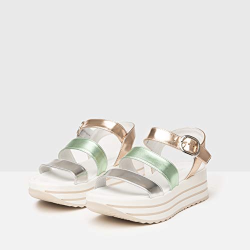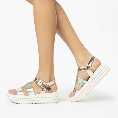 Nero Giardini E012593D Sandali Donna in Pelle E Tela - Argento 39 EU