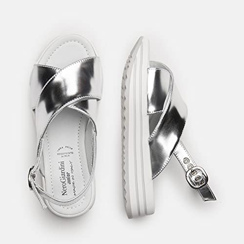 Nero Giardini E031621F Sandali Teens da Ragazza in Tela - Argento 39 EU