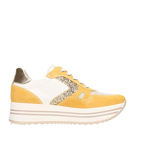 Nero Giardini E115194D Velour Sole Oro Glitter Sneakers Donna Zeppa Alta Nabuk Giallo Tessuto (Taglia 36)