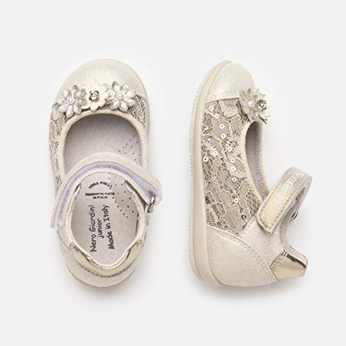 Nero Giardini P820000F Ballerine Kids Bambina in Camoscio E Tela - Platino 20 EU