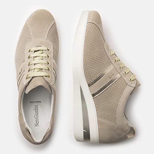 Nero Giardini P907500D Zeppe Donna in Camoscio E Tela - Ivory 39 EU