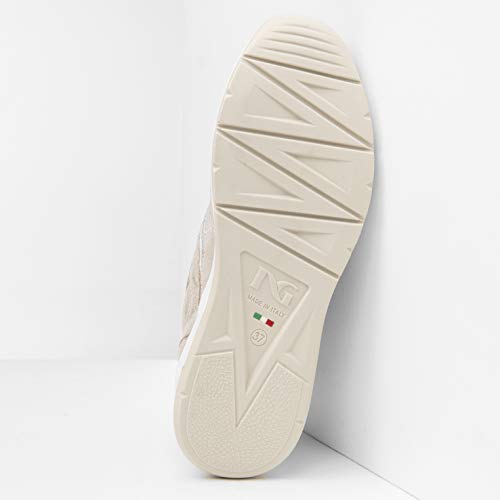 Nero Giardini P907732D Sneakers Donna in Pelle, Camoscio E Tela - Crema 40 EU