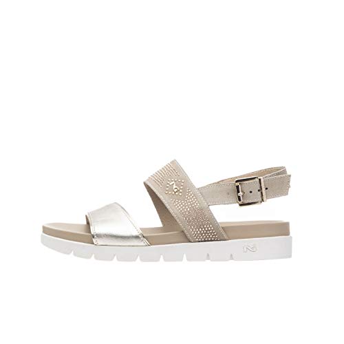 Nero Giardini P908314D Sandali Donna in Pelle E Camoscio - Platino 35 EU