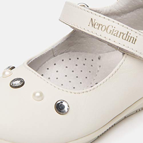 Nero Giardini P921040F Ballerine Kids Bambina in Pelle E Tela - Latte 23 EU
