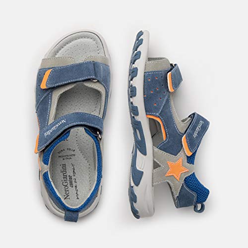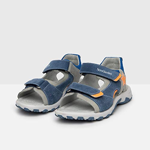 Nero Giardini P933610M Sandali Teens da Ragazzo in Pelle, Camoscio E Tela - Azzurro 27 EU