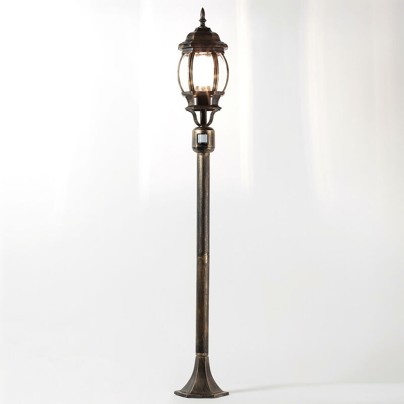 Dettagli del prodotto Materiale: Alluminio, vetro vero Dimensioni: larghezza: 150 mm, altezza: 1235 mm, lunghezza: 150 mm, diametro: 150 mm Attacco: 1x E27 fino a. 60 Watt Classe di protezione dagli spruzzi: IP44 Colore: Rame nero Peso: 1500 grammo Descrizione del prodotto Lampione per esterni in stile rustico ed elegante realizzata in alluminio e vetro. Grazie al sensore di movimento è la scelta perfetta per il vostro giardino, terrazzo e cortile. Attacco: E27 con una potenza max. di 60 W. Compatibile con lampadine LED e a risparmio energetico (N.B. lampadine non incl.) Angolo di rilevamento: 120° | Raggio d'azione: fino a 8 metri (a seconda delle condizioni atmosferiche)| Durata: regolabile da 10 secondi fino a 8 minuti | Sensibilità dello strumento regolabile La tonalità del rame anticato è lavorata a mano, pertanto sono possibile leggere variazioni di colore (più chiare/scure) Grado di protezione IP44: impermeabile contro la pioggia | Dimensioni base: da bordo a bordo 15 cm
