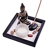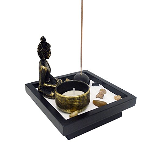 Giardino Zen con Buddha, sabbia, rocce, candela, portaincenso, per Feng Shui, con braccialetto di corda Mxsabrina W, colore: rosso, SKU: T1020