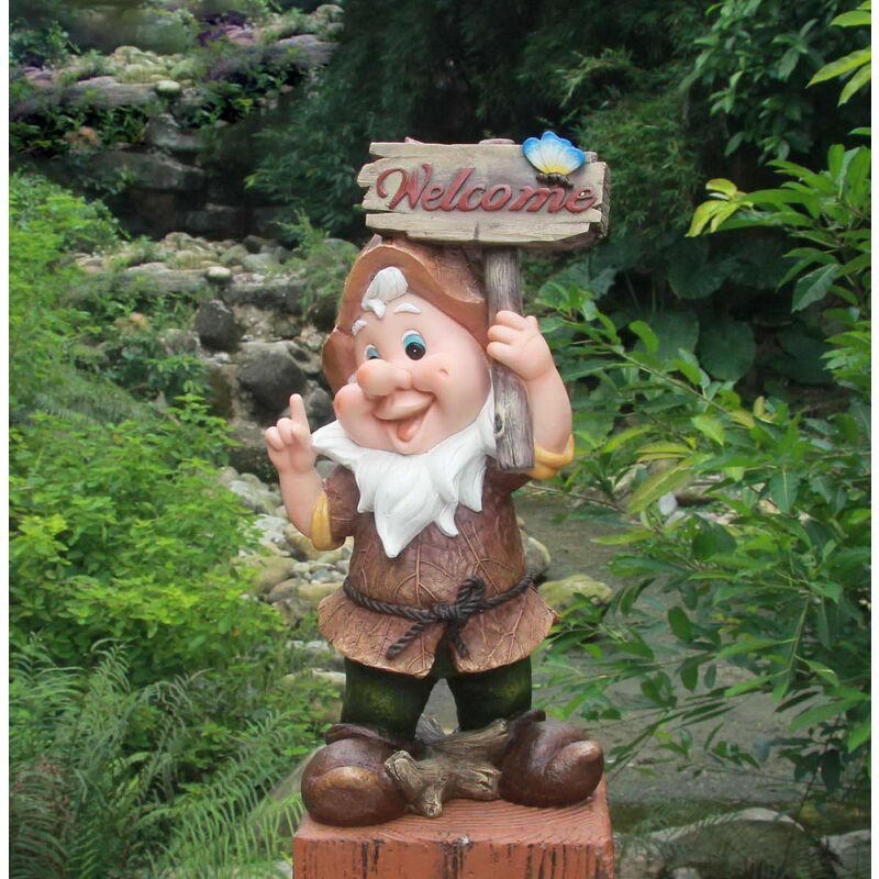 Gnomo di benvenuto con scritta in lingua inglese “Welcome”, altezza 37 cm. Materiale: poliresina. Profondità: 14 cm. Larghezza: 18 cm. Altezza: 37 cm. Decorazione molto bella.