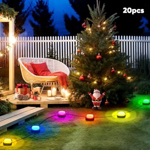 PaNt Giardino Lampade da Esterno,20 Pezzi LED Luci Sepolte Esterno Faretti a Led 15.5m Luci a stringa,Telecomando e controllo APP per cortile Strade aiuola Vialetto Prato