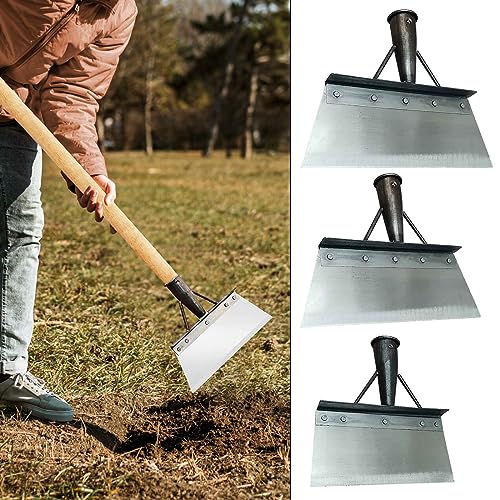 Materiale durevole: l'intera testa della pala è realizzata in acciaio inossidabile, resistente e durevole, mentre i bordi affilati rendono più facile scavare, tagliare e fare leva su. La testa della pala si adatta perfettamente al pavimento senza perdere polvere. (Nota: il manico in legno non è incluso)