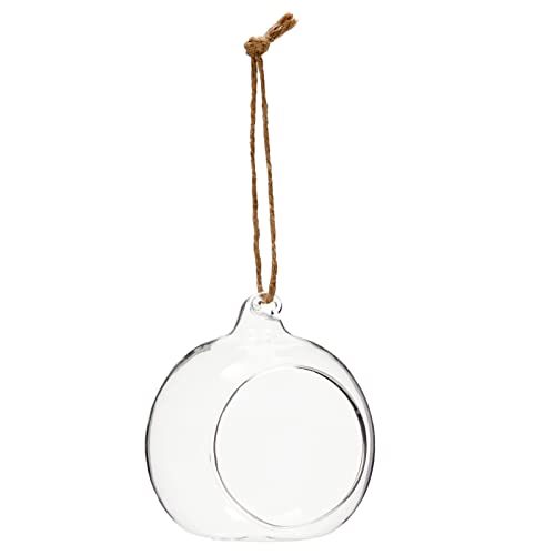 Set di 6 vasi da giardino in vetro da appendere con corda di iuta per piante grasse, ornamenti in vetro trasparente per candele tealight (7,6 cm)